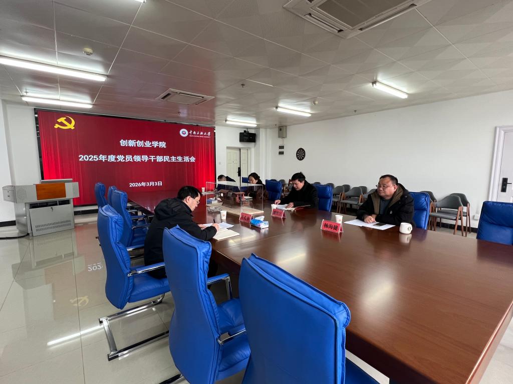 根据学校党委部署及《关于开好2025年度党员领导干部民主生活会的实施方案》文件要求,创新创业学院领导班子于2026年3月3日认真召开了2025年度党员领导干部民主生活会,学校督导组吴孔勇同志到会指导并作点评讲话,学院领导班子成员潘泽江、杨海健、刘凝芳参加会议。会议由创新创业学院院长潘泽江同志主持。