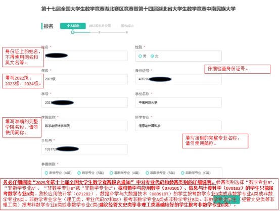 4.考生需填写身份证上的姓名,不得使用网名和英文名等,以免影响获奖证书的发放。