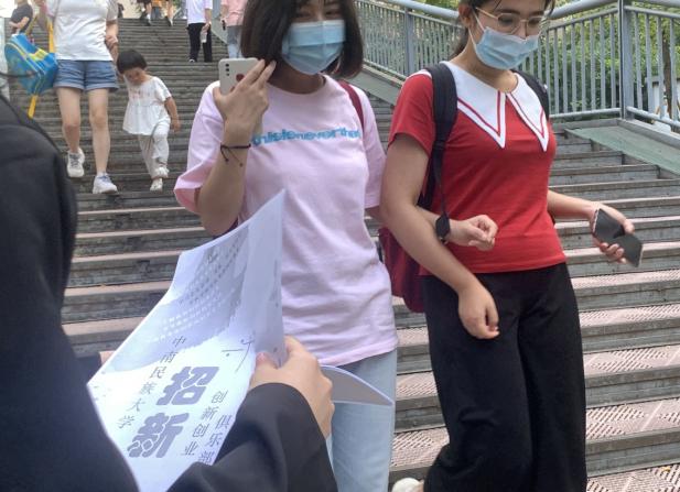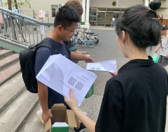 在线下宣传的过程中,俱乐部成员来到人流量较大的宿舍区、食堂等地方,将俱乐部招新的宣传手册发放给感兴趣的同学。通过俱乐部成员的努力,更多的学生认识了大学生创新创业俱乐部,多位拿到宣传手册的同学表示希望能够加入双创俱乐部。
