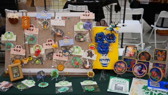美术馆二楼60个文创集市展位人头攒动,空气中弥漫着创意与热情。该校师生运用烧箔、漆画、螺钿等各项非遗技术创造出日常生活用品,现场广受好评。“每一个作品都很吸引眼球!”参观学生华圆钰惊叹道。此次“最美国潮”摆台活动为学生实现创新创业比赛成果转化提供了一个平台,鼓励青年创业者走向更大的市场实现创业梦想。“前期我们团队已经实地考察湖北英山的缠花技艺,希望通过这次摆台让更多师生了解这项非遗,推动非遗传承项目落地。”摊位“缠花新韵”负责人许愿说。