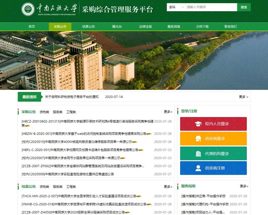 据悉,威尼斯官网采购综合管理服务平台于去年年底启动建设,我中心克服今年年初新冠肺炎疫情带来的各种困难,与学校有关部门积极协调沟通、同平台研发供应商密切联系合作,使平台如期实现上线运行。该平台的建设是深入贯彻落实国家“放管服”改革要求、切实提高威尼斯官网治理能力和治理体系现代化、提升招标采购工作效率的重要举措,对于实现“有迹可循、有据可查、过程可追溯”的招标采购环节风险防控具有重要意义。我中心将密切跟踪各方使用情况,不断完善平台功能,简化流程,优化操作,使校内师生、代理机构和供应商有更好的使用体验;同时,按照学校规章制度“废改立”要求,抓紧完善平台使用的配套制度,加强内控机制建设。