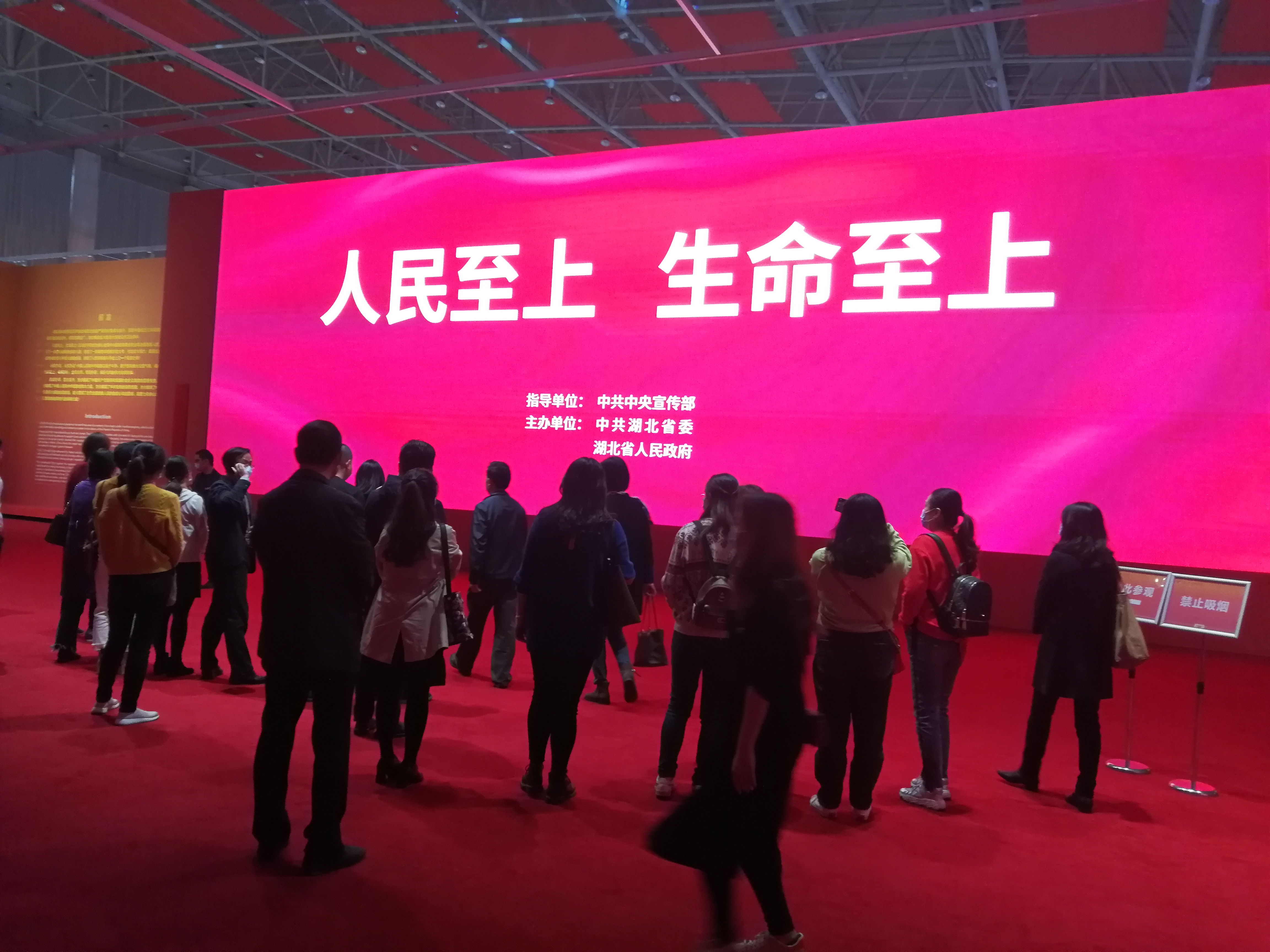 11月18日下午,档案馆(校史馆)党支部到武汉客厅参观“人民至上 生命至上——抗击新冠肺炎疫情专题展览”。此次专题展览展路线长1445米,照片展出1100余张,实物展品1000余件(套)、视频45个,设计大型场景33处,互动项目18处。综合运用图片、文字、视频、实物、模型、互动体验等多种表现形式,辅以互联网+、VR、AR等手段,各类展览要素总计超过6000项。