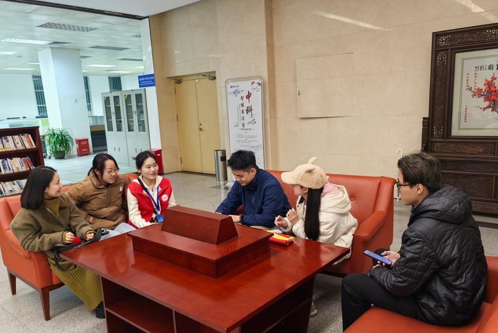 图为实践团队与广西大学校史馆讲解员座谈交流