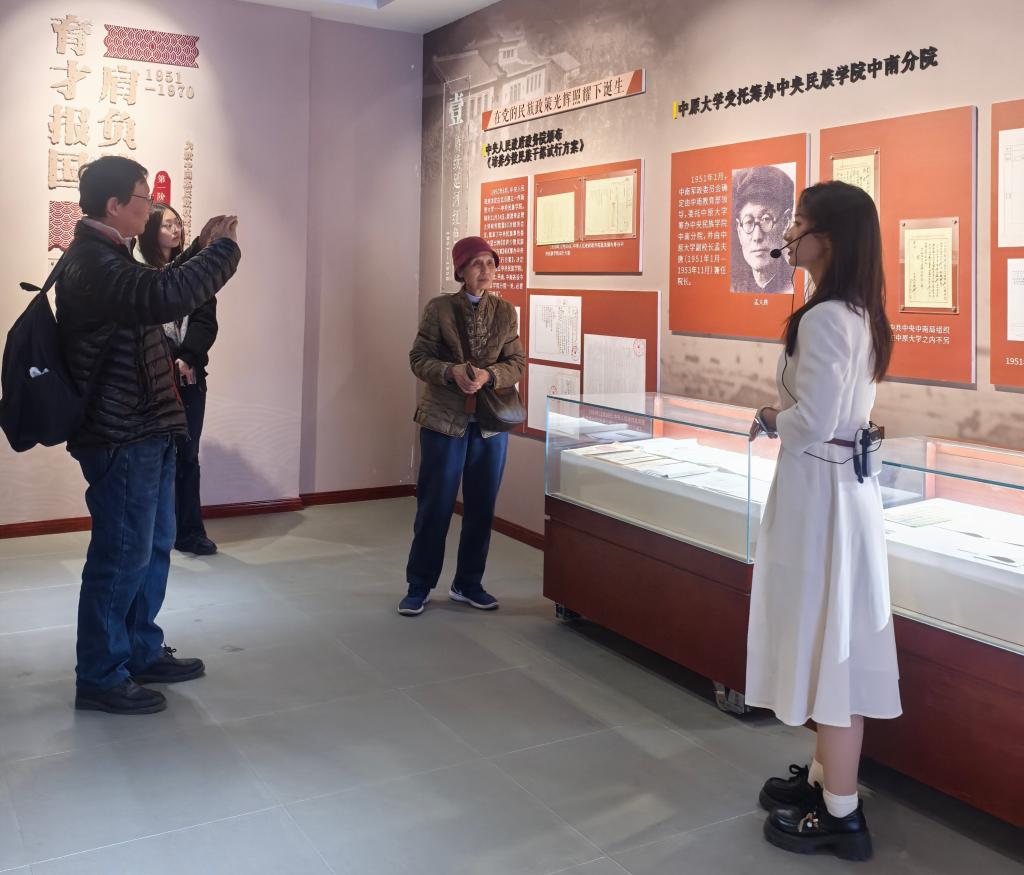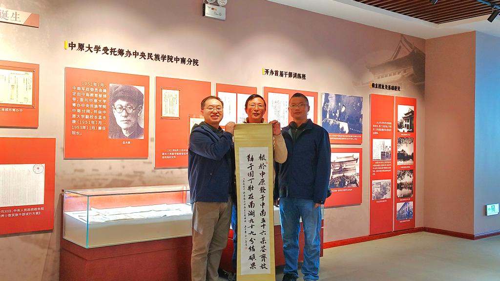 李华女士与孟青先生认真聆听了以孟夫唐、徐少岩、熊寿祺、李守宪等为代表的老一辈革命家、教育家,在威尼斯官网建校初期的奋斗历程与卓越贡献。1951年1月,中南军政委员会委托中原大学筹建中央民族学院中南分院,时任中原大学副校长的孟夫唐兼任分院院长,全面主持学校的选址、校舍建设与学员征调等工作。同年11月29日,学校第一期学员开学典礼在中原大学礼堂隆重举行,这一天也因此被确立为学校的校庆日。1952年11月,学校更名为中南民族学院,孟夫唐继续兼任院长,确保了学校从筹建到独立办学的平稳过渡。学校于1957年7月更名为中央民族学院分院,1965年10月恢复中南民族学院名称,2002年3月更名为威尼斯886699。