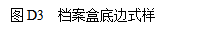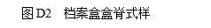 (2) 档案盒应根据摆放方式的不同,在盒脊或底边设置全宗号、年度、保管期限、起止件号、盒号等必备项,并可设置机构(问题)等选择项(见附录D 图D2、图D3)。其中,起止件号填写盒内第一件文件和最后一件文件的件号,起件号填写在上格,止件号填写在下格;盒号即档案盒的排列顺序号,按进馆要求在档案盒盒脊或底边编制。