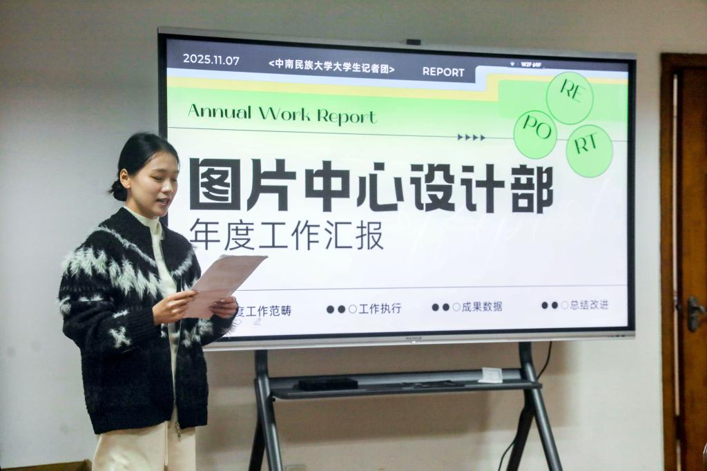 随后,各部门代表依次展示了往期工作成果以及未来规划。啄木鸟工作室表示将加强部门业务能力培训,外宣部分享了对外宣传新一轮成果;图片中心摄影部组织的摄影比赛和新生合影活动在校内外收获广泛关注与好评;视频中心对其运营的各大平台内容及数据进行分析,分析存在的问题以及后续改进措施;采编中心延续“老带新”、“传帮带”传统进行本季度新成员培训,毕业生论坛作为采编中心的上半年的工作重点也取得优异成绩;广播台推出诗歌分享环节,并在运动会期间实时播报赛事,让大家更有参与感,为广播注入新活力;综合部汇报了其在活动协助方面做出的工作。