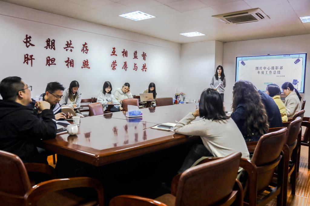 会后,指导老师对大学生记者团各部门本年度工作成绩进行打分。图片中心及新媒体中心获评“2024-2025年度优秀部门”。