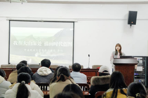 黄启帆以《繁荣社会主义文化 以全会精神为矩 照亮文化强国之路》为主题,系统梳理了“十四五”时期我国文化事业与文化产业的蓬勃发展成就——马克思主义意识形态指导地位持续巩固,公共文化服务体系覆盖城乡,文化遗产保护传承与国际传播效能显著提升。在此基础上,他深入解读“十五五”规划中文化建设的核心目标与关键举措,结合“AI蜀锦”赋能非遗传播、湖北宣恩推进文旅融合等鲜活案例,阐述了文化数字化转型与文旅深度融合的实践路径。他呼吁青年学子主动投身校园文化建设与民族文化传播,通过“笔友计划”“红色调研”等活动,铸牢中华民族共同体意识,以青春之声讲好中国故事,以青年之力传播民族声音。