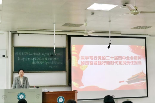下一步,经济学院将把学习贯彻党的二十届四中全会精神作为重要政治任务,纳入党委中心组理论学习、党支部“三会一课”、主题党日、班团会等重点内容,按照学校统一部署,在全院掀起学习宣传贯彻热潮,全面对标对表全会精神,坚决完成今年各项工作任务目标,确保全会精神见行见效。