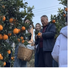 15日,调研团队在秭归县万古寺村党委书记屈家明的带领下实地考察柑橘种植基地。同学们亲身体验橙子采摘,学习秭归脐橙“一果两剪不刮脸”的标准化采摘技术。屈书记介绍,万古寺村通过电商直播为当地农户平均增收20%,并依托“中华屈氏第一村”的文化底蕴,积极推动“五屈”文化工程与数字技术融合,实现文化与产业协同发展,最终借助文化效应打造该村脐橙品牌。16日上午,团队前往郭家坝镇烟灯堡柑橘产业示范园,调研水肥一体化滴灌喷灌系统、数字化气候土壤监测平台、“田间小火车”和农业无人机运输等产业数字化应用场景。据郭家坝镇农技中心主任李远伏介绍,物联网技术与智能装备的应用显著提升了脐橙种植效率与果品质量,助力果农增收致富。