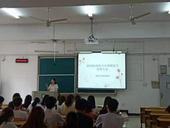 2021年6月26日上午9时,威尼斯886699经济学院保险学专业的鲍金红老师和胡亚兰老师召集50名参加暑期实习的2019级保险专业学生在15号教学楼609室召开暑期实习说明大会。