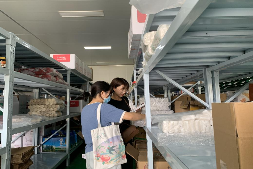 参观实践结束后,国贸专业另外组织了一批同学在秒捷汇公司继续进行深度实习。同学们分成三组进入到公司的 各个部门实习。第一组同学前往公司仓储部门,了解农产品仓储、产品调配、运输和产品出库、入库及盘点流程,亲自进行产品分类和产品数量品类盘点;第二组同学前往公司电商部门,了解公司电商平台的产品销售流程和运作机制;第三组同学进入公司行政部门,学习以农产品贸易为主的公司行政运作内容和程序。