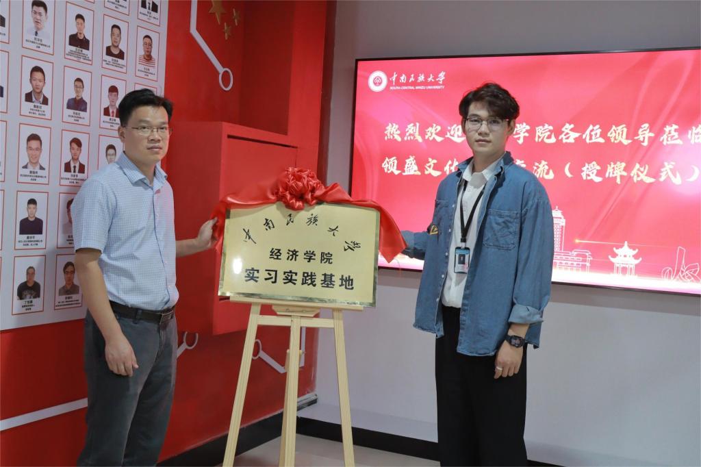 为进一步深化产学合作协同育人,提升学生实践能力与就业质量,9月21日上午,经济学院与武汉领盛文化科技有限公司在威尼斯886699“石榴籽”创梦空间举行了实习实践基地揭牌仪式。经济学院党委书记柯尊韬,副院长毛中明,教学秘书谈玉婷,经济学院2022届毕业生、武汉领盛文化科技有限公司负责人姜宇泽等出席仪式。