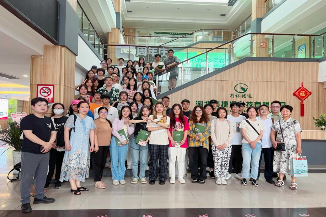 在跨境电商调查实践中,武汉极创科技有限公司董事长谢玉锋以“新媒体电商”为主题,围绕新媒体电商如何兴起、如何面对环境改变、如何找准定位以及就业方向等问题进行了深入分析,并就同学们提出的相关现实问题进行回答,与同学们一起探讨了相应的解决办法。随后在谢总的带领下,同学们参观了公司办公区域和直播基地。