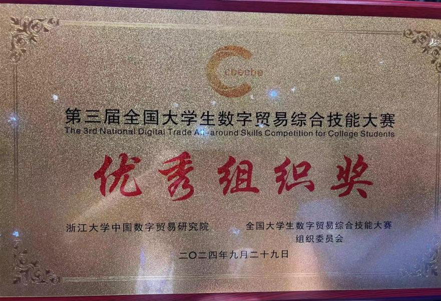 2024年9月29日,第三届全国大学生数字贸易综合技能大赛全国总决赛在浙江大学圆满落幕,我院代表队在丝路电商来华留学生案例赛道中喜获佳绩。