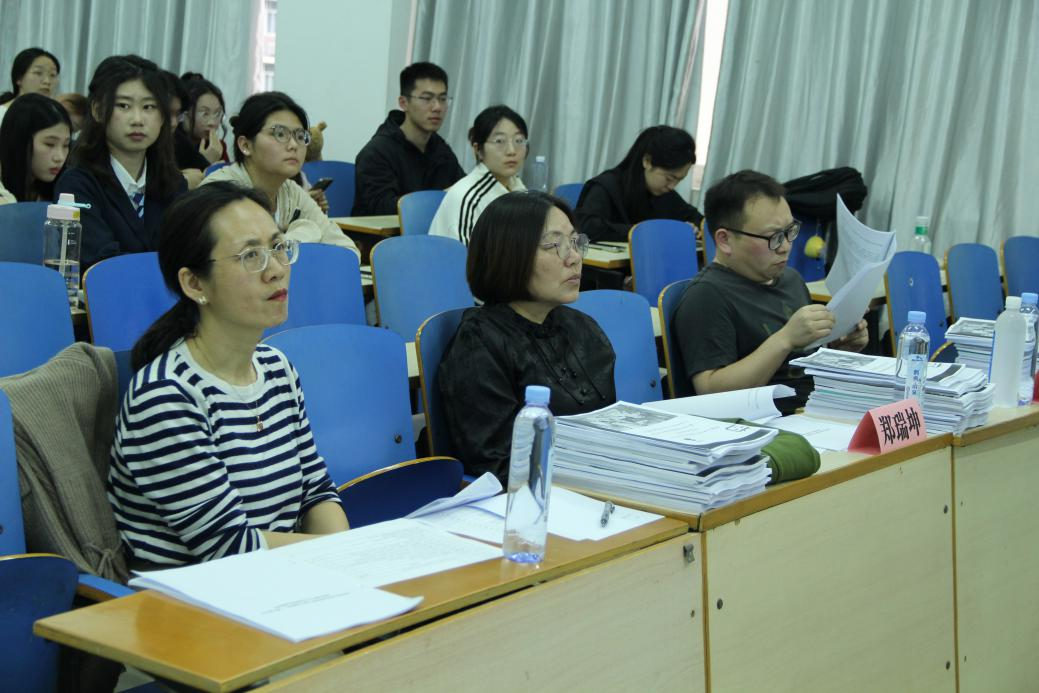 答辩会特邀校内外专家湖北工业大学理学院郑瑞坤教授,湖北大学许芳副教授,武汉纺织大学郭雪副教授,以及创新创业学院副院长刘凝芳、统计与数学学院副教授罗敬、公共管理学院副教授杨政怡组成评审团。六位评委从学术创新、实践价值、技术规范等多维度把关,为参赛项目提供跨学科视角的专业指导。