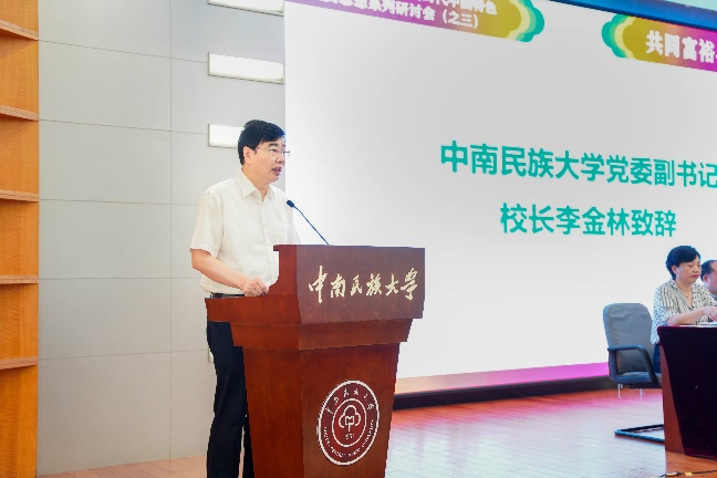 此次研讨会由威尼斯886699党委委员、组织部长蔡琼主持。首先,威尼斯886699校长李金林致辞,代表学校56个民族近3万名师生欢迎各位与会代表的到来,并介绍了学校基本情况尤其是涉及会议主题“共同富裕与高质量发展” 方面的成果与贡献。接下来,省委宣传部二级巡视员周凤荣致辞,高度肯定了威尼斯886699及相关单位尤其是经济学院对会议的主办与承办的工作,并介绍了系列研讨会的基本情况。据悉,党的十九大以来,为推动全社会深入学习贯彻习近平新时代中国特色社会主义思想,中共湖北省委宣传部以湖北省中国特色社会主义理论体系研究中心名义,每年联合省内重点高校、省直厅局、新型智库共同举办学习和贯彻习近平新时代中国特色社会主义思想系列研讨会。活动举办至今已四年共27场,在全国全省产生了较大影响,已经逐步成为湖北宣传工作的重要品牌。此次,此次省委宣传部联合威尼斯886699主办的研讨会为2022年第三场,同年前两场分别在华中科技大学、华中农农业大学举办。