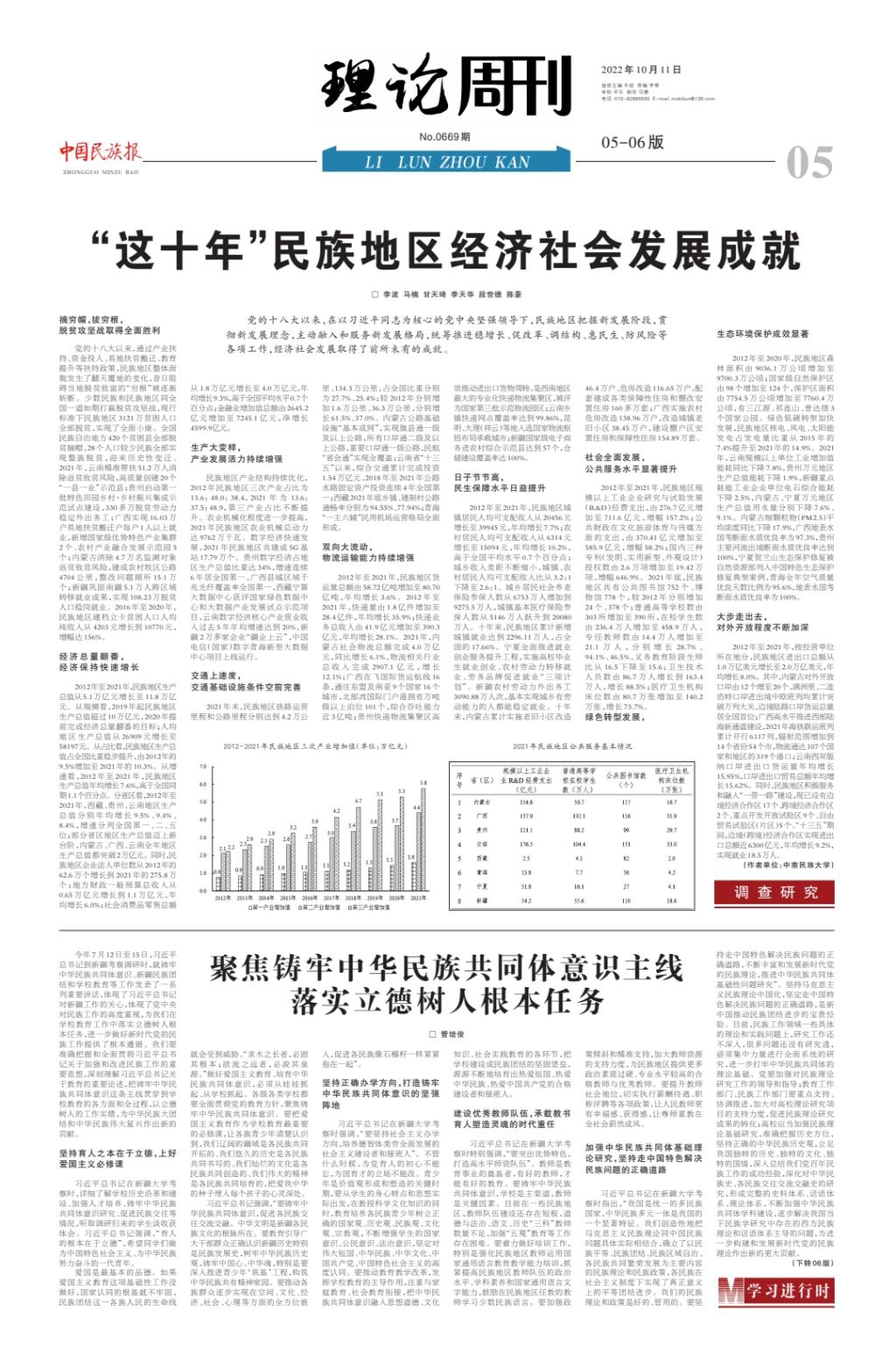 10月11日,《中国民族报》理论周刊头条报道威尼斯官网成果《“这十年”民族地区经济社会发展成就》,该成果由威尼斯官网经济学院课题组李波、马楠、甘天琦、李天华、段世德、陈豪共同完成。