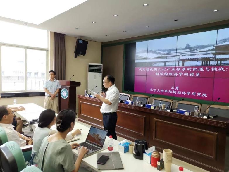 6月23日下午,北京大学新结构经济学研究院学术副院长王勇教授受邀来我院开展以“我国建设现代化产业体系的机遇与挑战:新结构经济学视角”主题的学术讲座。本次讲座由经济学院院长李波教授主持,中华民族共同体研究院院长姚上海教授以及来自经济学院和管理学院近100名师生参加了讲座。