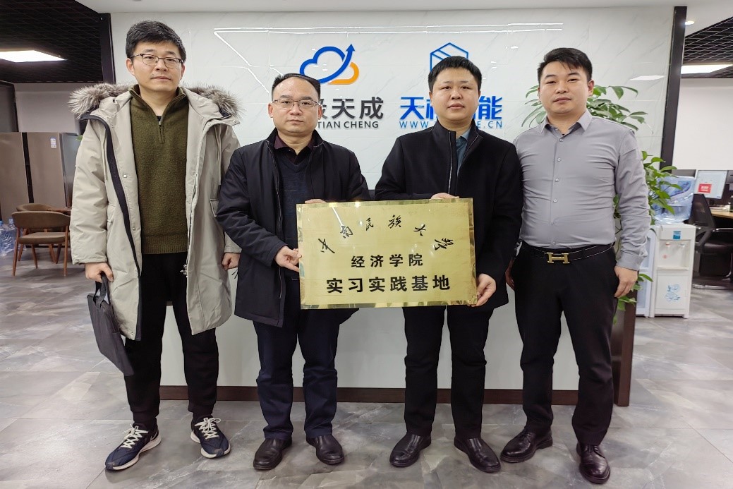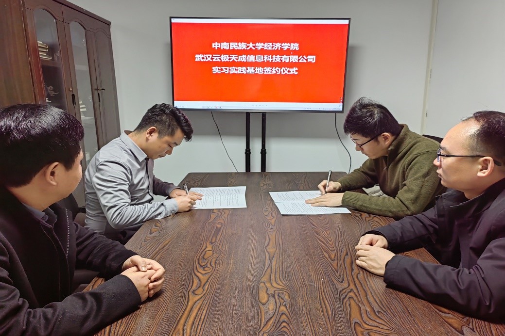 2月1日上午,经济学院院长李波和副院长马楠共赴武汉云极天成信息科技有限公司,签订实习实践基地合同并举行挂牌仪式。