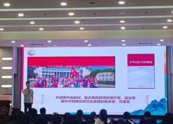 华文健老师以《从一字之变谈树立正确民族观》为题,从史论结合,探讨了从“五胡‘乱’华”到“五胡‘入’华”一字之变的内在原因,阐述了其深层次展示出的多元一体的正确民族观,并结合自身工作实际,呼吁新时代青年教工和大学生要牢牢把握铸牢中华民族共同体意识这条主线,努力做正确民族观的维护者、建设者,做中华民族深厚文化底蕴的继承者、传播者。