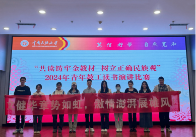 2024年4月12日,学校在学术交流中心国际厅举办了“共读铸牢金教材 树立正确民族观”2024年青年教工读书演讲比赛。经济学院2023级辅导员华文健老师凭借高质量的演讲内容、扎实的演讲功底和稳健的台风摘得桂冠。