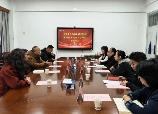 会议伊始,经济学院院长李波详细介绍了学院的基本情况、专业发展特色以及科研平台建设成果。随后,塔里木大学经济与管理学院院长王学剑围绕学院师资队伍、本科专业、硕士点建设等方面展开介绍,分享了塔里木大学作为“民族团结进步示范学校”的办学经验。双方明确了未来的合作方向:一是秉持“为党育人、为国育才”的育人共识,在专业建设和科研平台等领域加强资源互补;二是推动南疆研究院、中国自贸区研究平台建设合作;三是在科研上积极寻求资源合作,将科研优势转化为肥沃的科研土壤,助力科研成果产出。