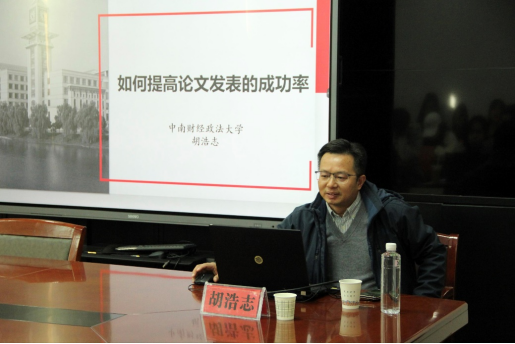 在学术发表标准日益提高的背景下,撰写兼具学术价值与实践意义的高质量论文、提高投稿成功率,是广大师生面临的重要课题,为帮助师生破解论文写作与投稿中的难点痛点,11月27日,经济学院于15号教学楼801教室举办以“如何提高论文发表的成功率”为主题的学术指导会。本次会议特邀《中南财经政法大学学报》编辑部副编审、多本核心期刊编辑胡浩志教授担任主讲嘉宾,经济学院教师代表及全体研究生到场参加,经济学院副院长熊芳主持。