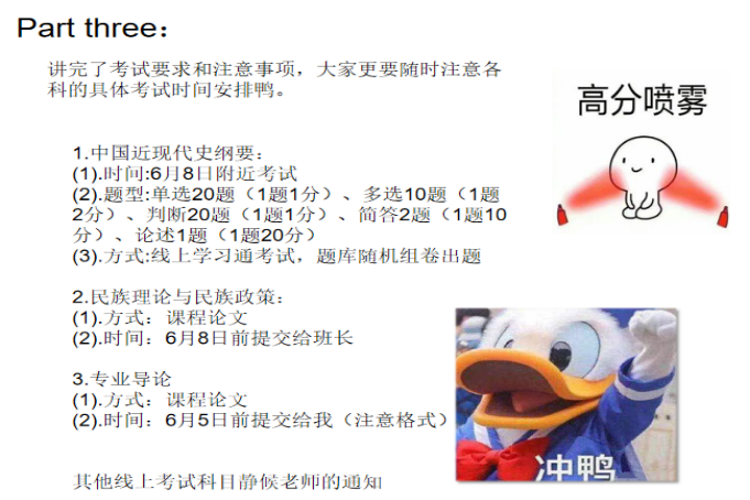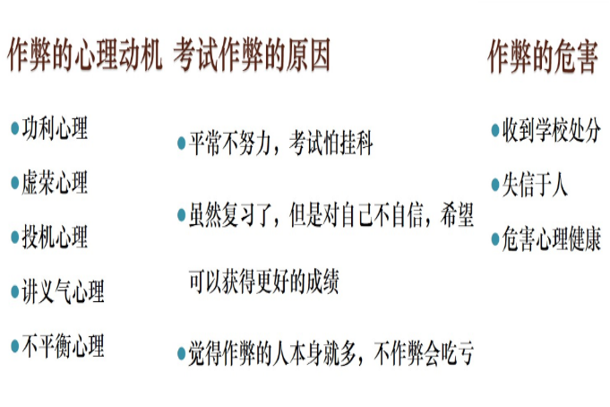 会前,各年级辅导员纷纷作了动员指导,要求各班学生高度重视,认真制作班会PPT,班委须组织本班学生完成诚信应考承诺书的电子签名,宣读《威尼斯886699学生考试违规处理办法》,明析考试违规行为的认定与处理,强调考试违规的后果,严肃考试纪律。各班级分别从考试时间安排、考试注意事项、复习备考建议等方面展开班内沟通交流,提出相关建议。金融1703班从作弊心理动机、作弊原因和作弊危害三个方面展开班会,并通过列举有关诚信的名言警句呼吁同学诚信应考;金融1802班由班长带领班级同学进行“坚持诚信考试”的宣誓,用响亮的声音彰显坚定诚信考试的决心;经济学类1908班分析线上考试的考试规则和考试要求,盘点网络考试的注意事项,详细总结近期线上考试科目的时间和题型,帮助同学们迅速进入考试状态、有针对性地进行期末复习备考。