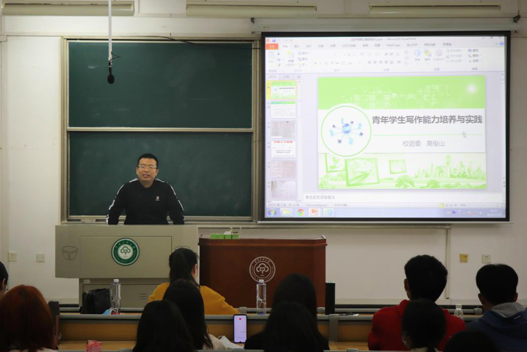 高俊山围绕新闻写作基本要求、学生写作常见问题、基本写作能力培养及青年学生写作建议四方面展开交流讲解。针对新闻写作的基本要求,他系统地梳理了新闻稿的结构和框架,要求同学们在写作过程中做到层次分明、逻辑清晰,确保新闻的真实性和客观性。关于学生写作常见的问题,高俊山表示,学生的新闻写作主要存在逻辑不清晰、观点不鲜明、语言不凝炼和前后不关联等四大问题。他结合多种类型的实际稿件对不同类型公文的相似性和差异性做出讲解,同时建议同学们多去学习借鉴前辈优秀的文章,从对比中发现不足、从模仿中做到积累,在写文章的过程中注重语言的准确性、行文的规范性、观点的概括性、论据的对应性,积极培养自身的资料搜集整理能力和思考学习能力,并通过大量的练习实现从量到质的飞跃。交流环节后,高俊山根据自身的公众号运营经验,讲述了宣传工作的要点和方法,并针对学生们提出的关于新闻写作方面的问题进行了详细的解答。