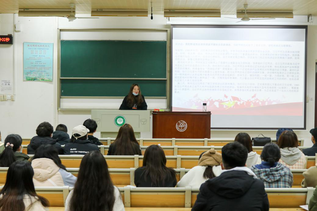本站讯(记者:唐慧扬)为大力弘扬习近平新时代中国特色社会主义思想,强化学生骨干价值引领,培养有责任有担当的新时代青年,12月11日晚,经济学院团委学生会于11号教学楼200教室举办《习近平与大学生朋友们》专题研读活动。经济学院团委学生会主席吴晓芳主持,副主席李文萱主讲,团委学生会成员到场学习。