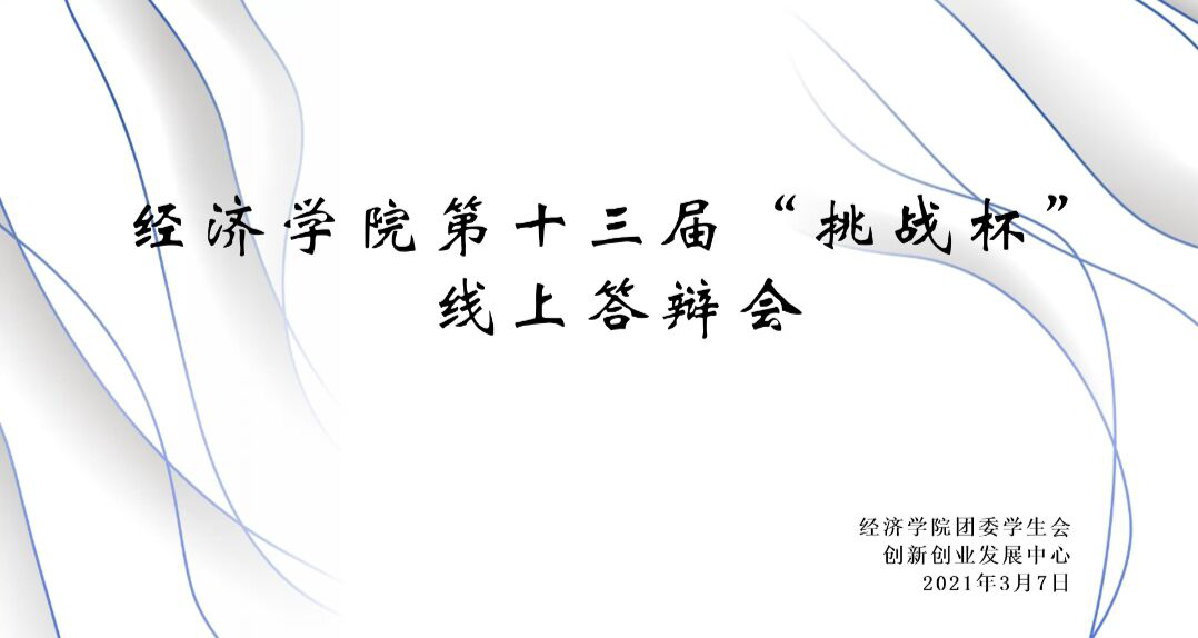 本站讯(记者:肖钰婷)为强化学生科研实践能力,推选优秀竞赛项目参与校级角逐,3月7日上午,经济学院举行第十三届“挑战杯”答辩会。经济学院教师刘继兵、李彦军、王丽娟、刘家悦及团委书记高无尽担任评委,共14支参赛队伍参与本次线上答辩。
