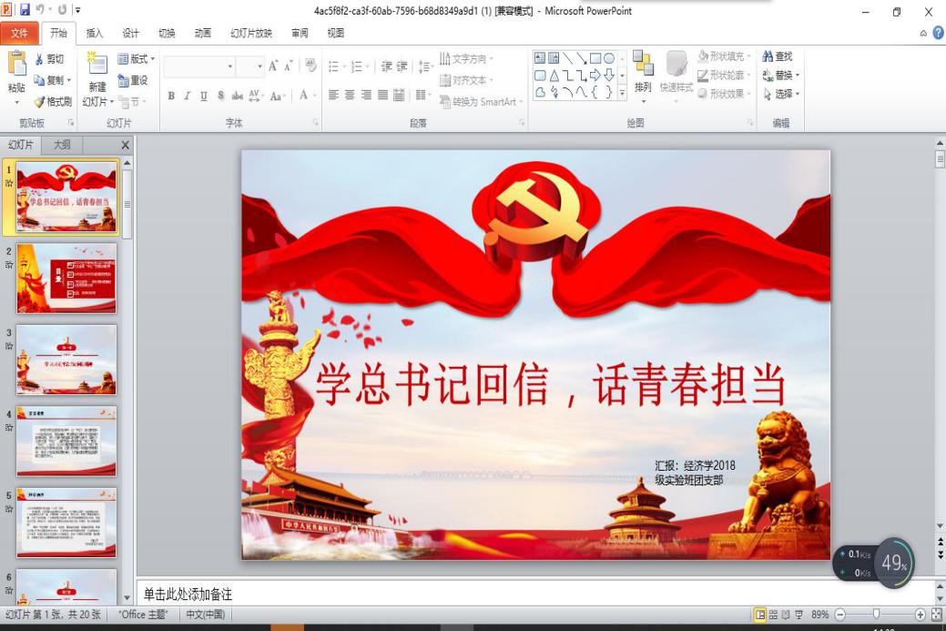 “百生讲坛”是湖北省高校共青团创新和加强思想政治引领的品牌活动,以“理论学‘习’我来讲”为活动主题,采取学生个人或团队公开演讲的形式开展,通过线上宣讲、优秀主持人评选、活力团支部竞赛等方式进行深化。自活动开展以来,经济学院团委高度重视、自主创新、精心组织,通过“进支部、进社团、进网络、进团课”等多种宣传引导方式积极推动“百生讲坛”系列活动发展,努力打通各级工作壁垒,力求达到“以先带后”的良好联动效果。