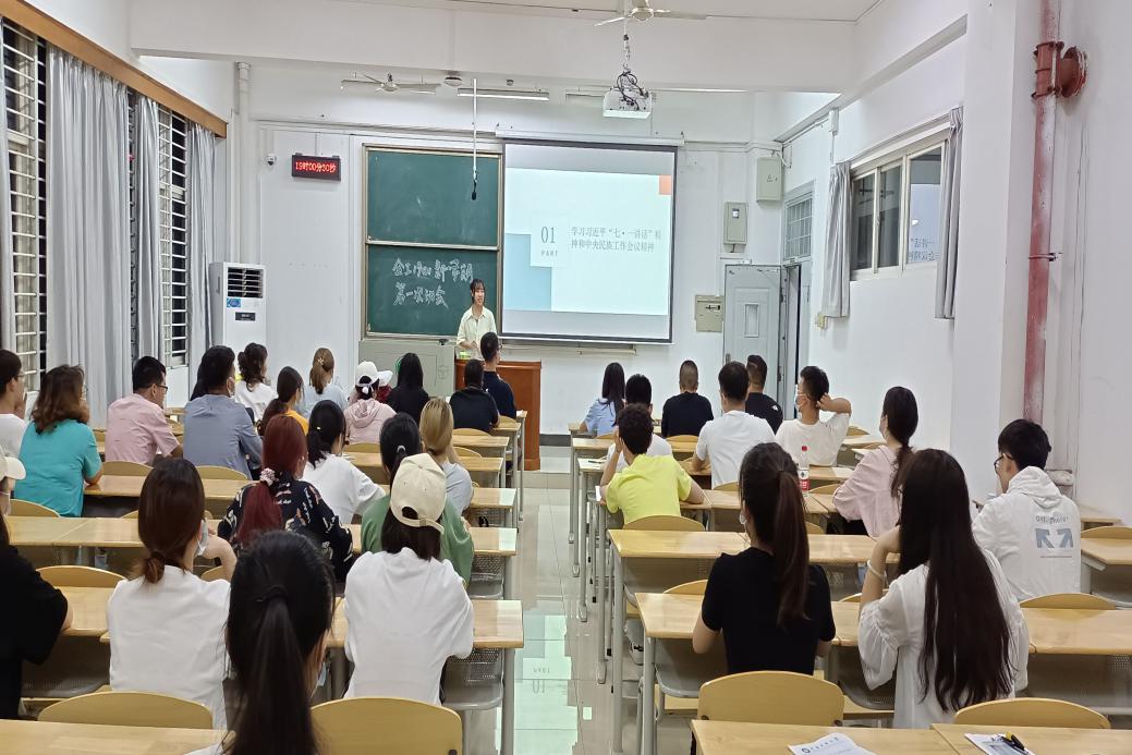 班会上,各班组织同学们集中学习了中央民族工作会议精神,号召同学们学好党的民族理论政策,铸牢中华民族共同体意识;传达了新学期的疫情防控工作要求,强调要正确认识疫情防控常态化,克服麻痹松懈思想,严格服从防疫工作安排和校园管理规定;开展了校园安全教育,组织同学们讨论安全用电、电信诈骗、交通安全等常见的校园安全问题,要求同学们加强安全防范意识,营造平安校园;强调了寝室的卫生维护和文化建设,要求同学们做到友善相处、互帮互助,积极推动寝室和谐与民族团结。此外,各年级结合当前阶段学生发展的重点工作,各自布置了具有针对性的班会环节。比如,2018级以“毕业”为主题,组织同学们集中讨论了考研、考公、实习就业等毕业动向问题,强调要充分利用大四学期,落实个人大学目标,让大学生涯不留遗憾;2019级组织同学们分享假期见闻和新学期规划,引导同学们确立未来目标,巩固专业课程学习,为大四毕业做好准备和过渡;2020级针对专业分流开展引导,使同学们充分了解分流后的专业学习,做好学业规划,并组织进行自我介绍和交流讨论,加强新班级的团结性和凝聚力。