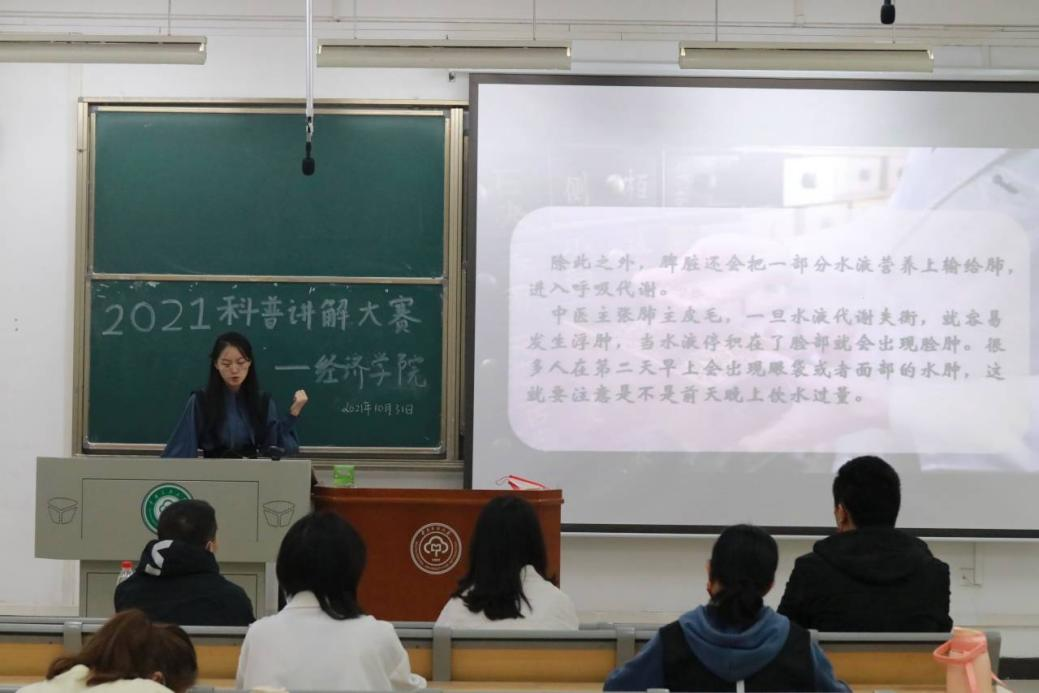 本站讯(记者:韦仁玲 甘剑慧)为增强学生科学素养,提高学生科普能力,10月31日下午,经济学院于15号教学楼112和119教室举办了第五届科普讲解大赛院级选拔赛。大赛邀请经济学院教师张茜倩、胡国生、甘天琦,团委书记高无尽及学生代表岳婷、杨嘉第担任评委,学院部分同学到场观赛。