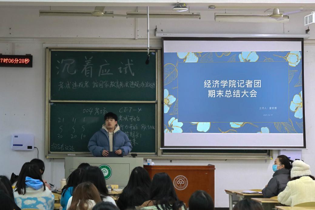 本站讯(记者:乔润典)为充分总结工作情况,规划未来发展方向,12月17日,经济学院记者团于15号教学楼106教室召开了期末总结大会。记者团指导老师徐莹及记者团全体成员参加会议。会议由记者团2021届团长童奕博主持。
