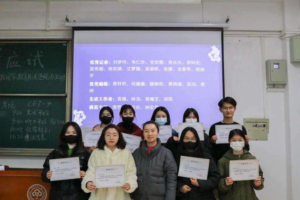 徐莹在发言中对记者团的工作开展情况给予了充分肯定,并对团队的未来发展方向提出三点期望:一是发扬团结向上的团队精神与认真负责的工作作风,加强各部门协作配合,不断提高新闻报道质量;二是在实践中珍惜学习锻炼的机会,充分利用学院提供的优势资源,多学、多写、多思考;三是继续丰富和拓展团队建设形式,利用业余时间开展读书分享会、优秀新闻报道学习等活动,使成员们学有所得。会议最后公布了记者团本学期评优评先名单,徐莹老师为优秀记者和先进个人颁发了获奖证书。
