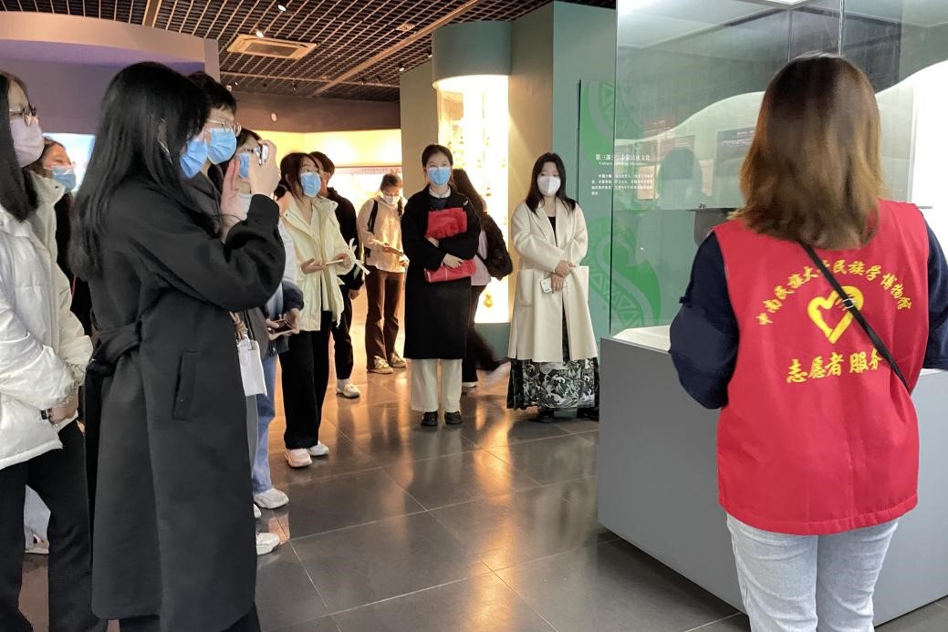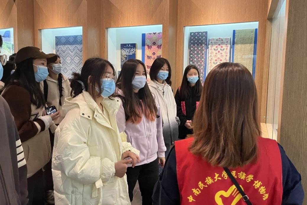 实践课开始前,培训班组织学员们参观学校民族学博物馆并共同制作主题心愿展板。在遵守学校疫情防控规定条件下,部分团校学员走进民族学博物馆,深入学习民族文化与优秀民族精神,进一步铸牢中华民族共同体意识,交流各民族的历史渊源及生活习俗,深刻领悟民族团结的重要性与必要性。本次实践课还准备了以蓝天为背景的活动展板,学员们在纸上写下党的二十大精神感悟及对未来的心愿寄语,并将其折成纸飞机,粘贴在蓝天展板上,寓意将美好祝福放飞在祖国的蓝天下,共同展望祖国与个人的美好未来。