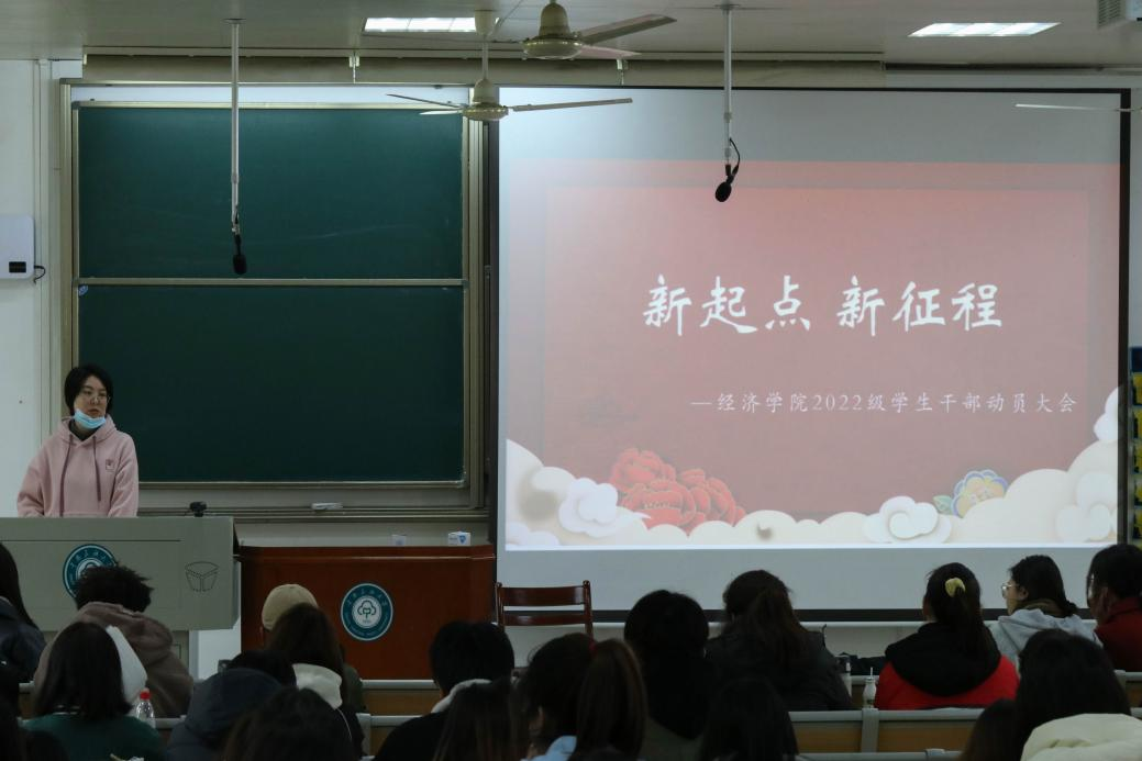 2月24日下午,经济学院本科2022级组织召开了年级主要学生干部大会,部署新学期年级学生工作。学院2022级辅导员张弘老师、鲁睿老师、2022级学生会干部、各班班长、团支书、寝室长到场参加会议。