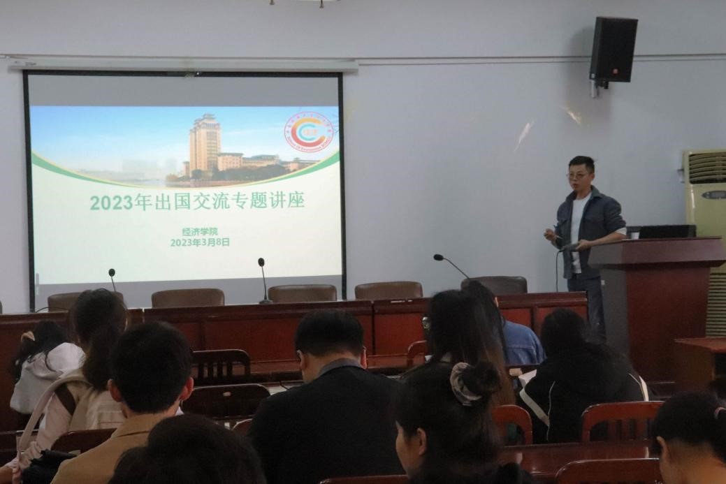 为帮助同学们全面掌握出国交流相关知识信息,做好学业发展规划,3月8日和3月10日中午,经济学院于15号教学楼1006会议室举办了出国交流学习专题讲座。本次讲座邀请到新东方国际教育知名讲师靖玉婷、刘宏毅、威尼斯886699国际交流处李楠老师、五位出国交流学习优秀学生代表进行讲解答疑。经济学院2021级辅导员张竹云、赵驰及各年级部分学生到场参加。讲座由张竹云主持。