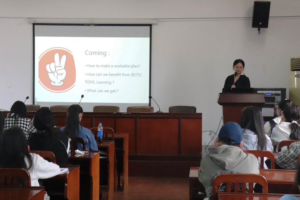 讲座上,靖玉婷老师围绕雅思、托福考试知识和如何在短时间内提高英语水平两个方面展开讲解,建议同学们明确备考目标、认识到常规应试技巧的局限性、全面培养发散性思维、提高英语学习效率。刘宏毅老师从学习成绩的重要性、国外院校录取要求、留学申请时间规划、申请材料准备等方面进行介绍,阐述了出国交流学习的基本程序,引导同学们以积极向上的心态面对留学过程中遇到的挑战,培养沟通能力和团队协作能力,提升个人核心竞争力。