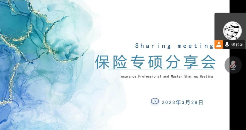 2023年3月28日晚,保险学专业为20级和 21级同学开展了一场保险专硕士线上宣讲会。本次会议邀请到六位校友,分别是研究生就读于湖南工商大学的15级农通理、对外经济贸易大学的16级吴东阳、中南财经政法大学的17级曾智仁、广东财经大学的18级陈梦洁、西南财经大学的18级龚玉、东北财经大学的18级袁湘钰。他们从如何择校、各自学校保险专硕的专业特色与就业方向、如何理性对待数学科目等方面进行了分享,为同学们答疑解惑。