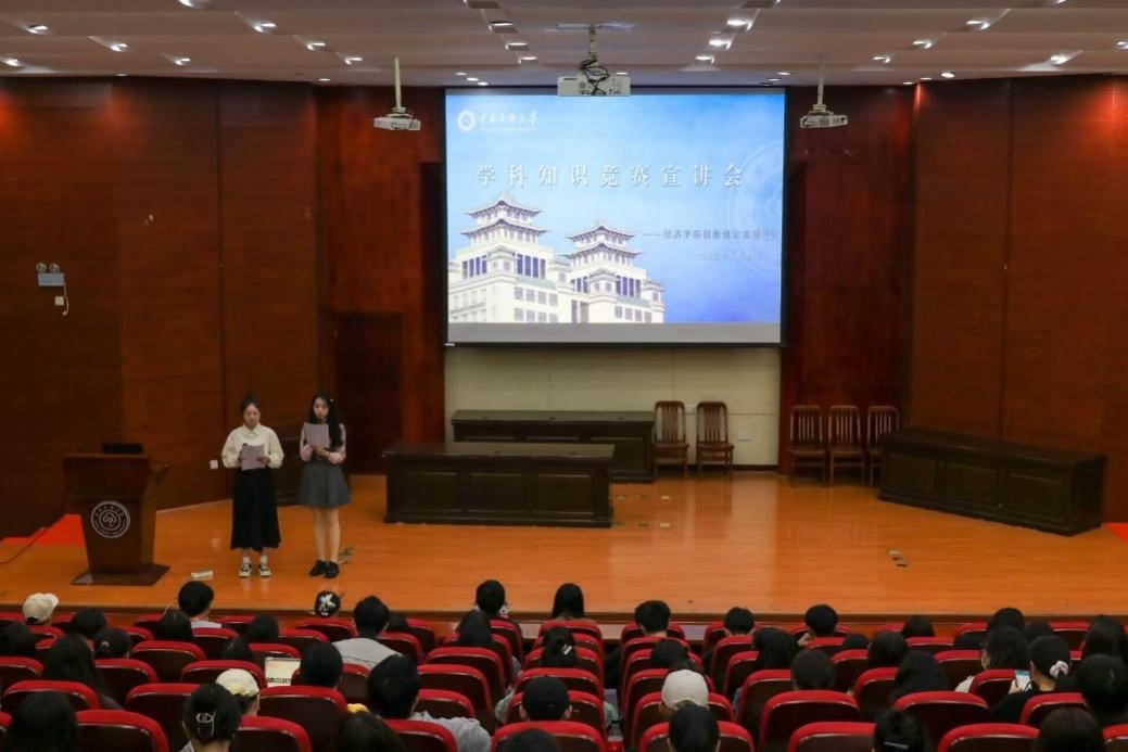 为营造良好的赛事活动氛围,提高同学们的综合实践能力和创新意识,4月9日晚,经济学院在模拟法庭举办了学科知识竞赛宣讲会。2019级优秀学生代表杨玮丽、文砚江、马子祺进行竞赛宣讲,2020级至2022及学生代表现场参加。会议由2022级彭文香、张婧同学主持。经济学院学生工作办公室主任安树庭参加了此次活动。