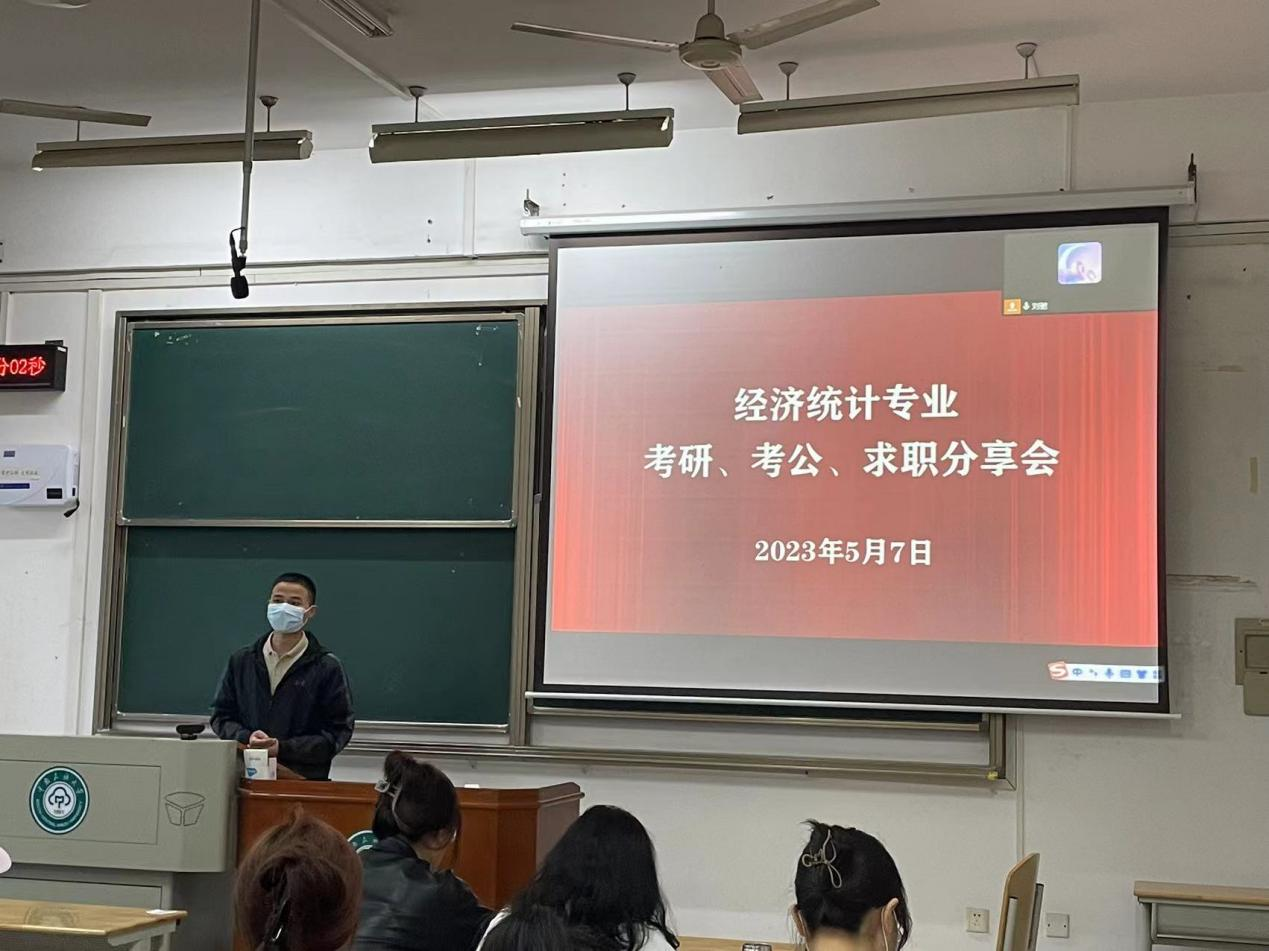 为帮助经济统计专业学子确定发展目标,制定科学、合理的未来发展计划,5月7日晚,经济统计教研室邀请5位2019级优秀毕业生在15号教学楼207开展经济统计专业考研、考公、求职分享会,2020级、2021级经济统计专业学生到场参加学习。