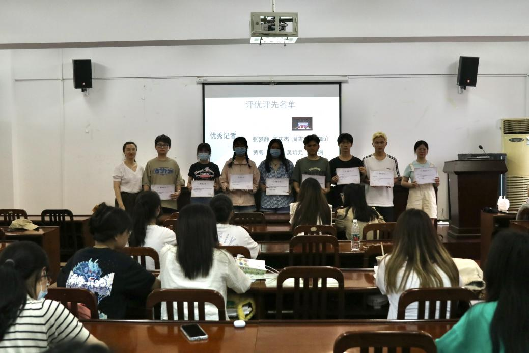 徐莹老师表示,学院党委高度重视新闻宣传工作和新闻工作者的培养,记者团是学院工作和先进典型的记录者、传播者,自从记者团成立以来,一批又一批优秀的学生在记者团中得到了成长和锻炼,希望新一届记者团成员注重学习,努力提高业务水平和专业素养,履职尽责做好记者工作。团队建设上要创新培训内容和形式、组织多样化团建交流活动,将记者团建设成一支富有活力、素质过硬的团队,为学院新闻报道、舆论宣传和文化建设提供更多视角、注入更多活力。会议最后,徐莹老师为评优评先获奖成员颁发奖状,并公布了2023届记者团团委会成员名单。