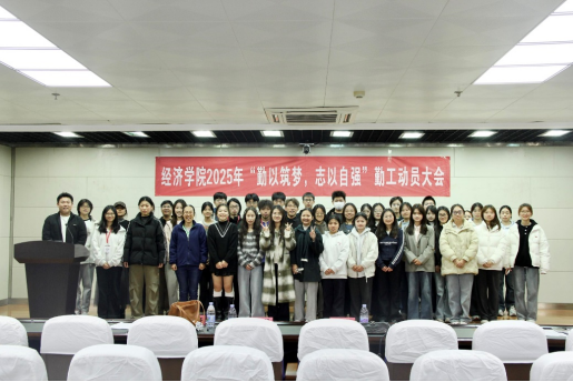 为大力弘扬勤俭节约、自立自强的勤工精神,鼓励学生以劳动淬炼意志、以实践增长才干,帮助同学们更好了解勤工助学和勤工岗位的相关事项,11月22日,经济学院于16号教学楼二楼报告厅召开2025年“勤以筑梦,志以自强”勤工动员大会。经济学院团委副书记李恩朴,院勤工资助工作负责人、2024级辅导员郭修齐,2025级辅导员张竹云出席会议,获国家奖学金、国家励志奖学金学生代表及2025级学生代表、2025级各班班长和勤工岗所有同学到场参加。会议由团委学生副书记林丽彬主持。