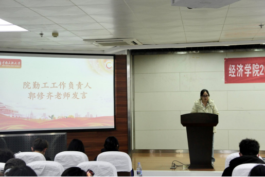 最后,郭修齐在大会总结中号召同学们要树立正确劳动观,平衡好学业与实践,将勤工助学中培养的坚韧品格融入成长历程,用奋斗书写青春华章,并强调学院将为全体学生的勤工实践提供坚实支持与保障。