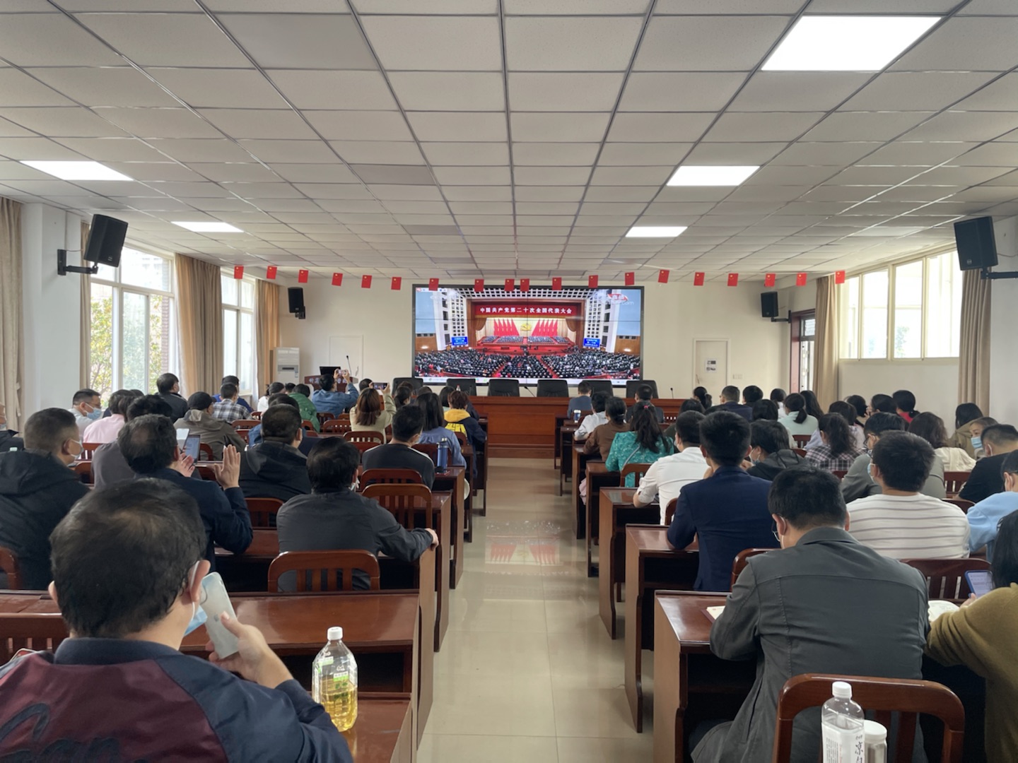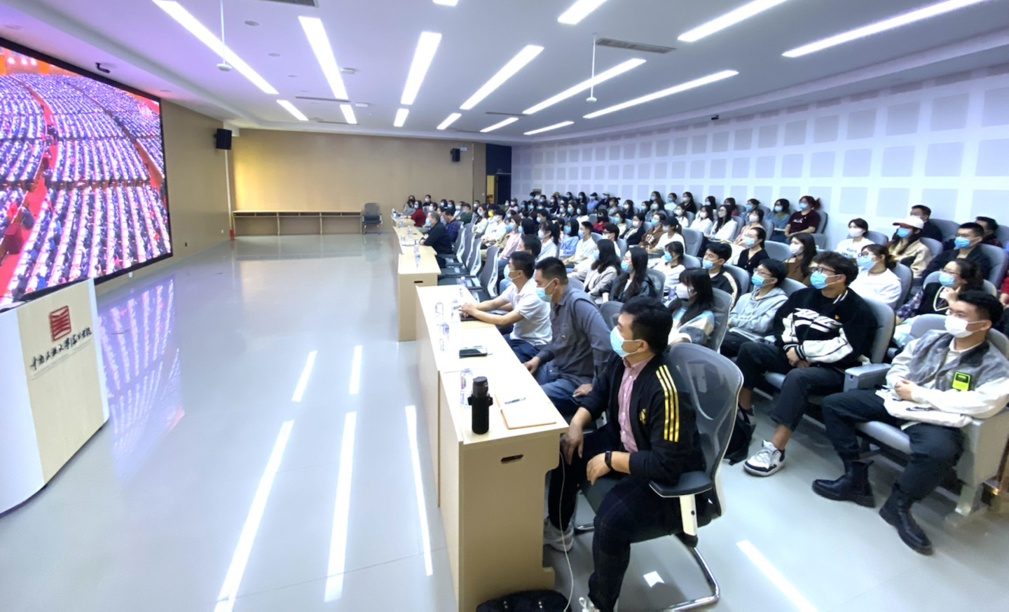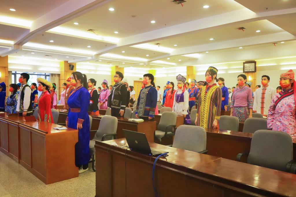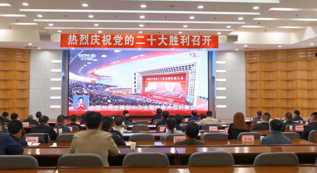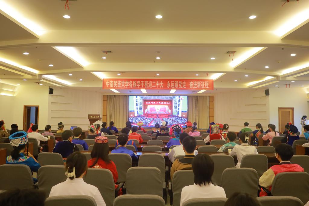 10月16日,中国共产党第二十次全国代表大会在北京隆重开幕,威尼斯官网在做好疫情防控的同时,积极有序组织各族师生收听收看大会开幕会。全体校领导及各单位主要负责人在学术交流中心主会场,机关干部在行政楼会议室,教学单位及直属、教辅机构师生在各单位分会场,56个民族的学生代表身着节日盛装在润良报告厅集中收听收看。其他师生通过不同渠道在家中、寝室、教室收听收看。此外,校园广播、电子显示屏等也对开幕会进行同步转播,确保大会精神让师生广为知晓。