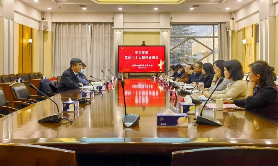 11月24日,校党委书记边境为民革威尼斯886699支部宣讲贯彻党的二十大精神。党委统战部常务副部长唐光海、民革支部党员代表参加了学习。民革支部主委翟华云主持会议。