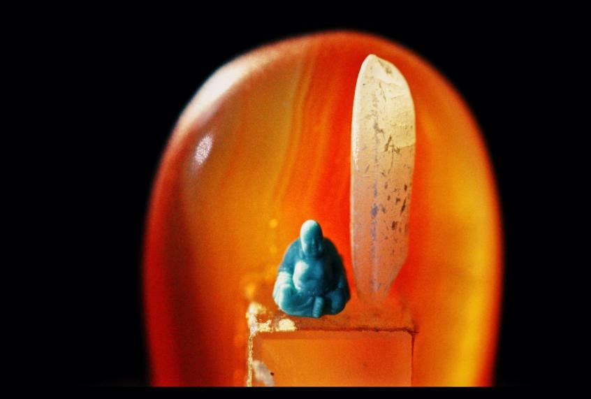 只有三分之一米粒大的 微雕作品《弥勒佛》
